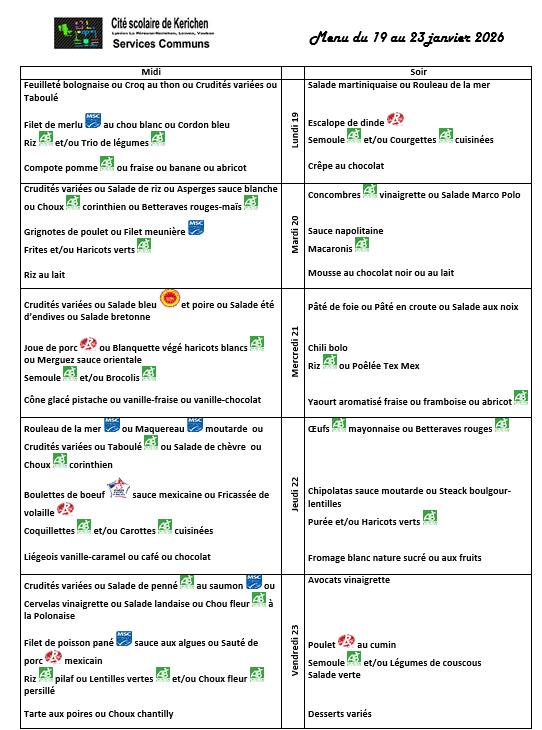Menu du 19 au 23 janvier